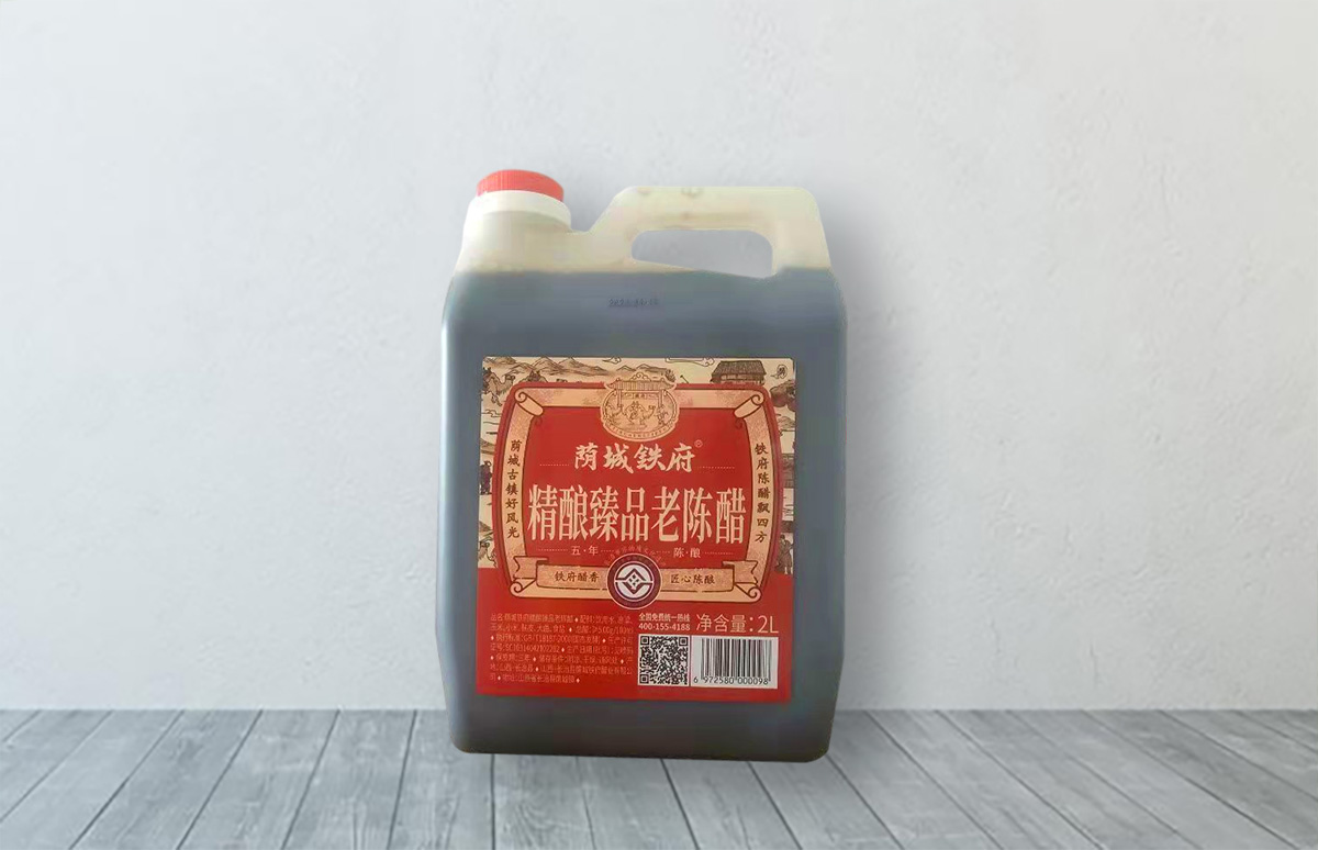 憑借市級非物質(zhì)文化遺產(chǎn)老缸釀老醋的獨有傳承,經(jīng)過山西老陳醋的“蒸”、“熏”、“酵”、“淋”、“陳”純手工古法釀造,秉承“夏曬伏,冬撈冰”的經(jīng)典工序,造就了鐵府陳醋:色澤粽紅味清香,酸香棉甜滋味好,愈陳愈香不變質(zhì)的獨特品質(zhì)。內(nèi)含多種維生素、氨基酸、有機酸、醇和酯及糖類等營養(yǎng)和風味成分,是一款營養(yǎng)價值高的純糧釀造食醋。